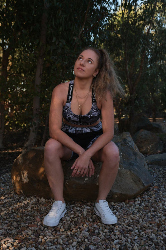 Tamay Beam Art - Cross Back Sports Bra - Mahguwi Design