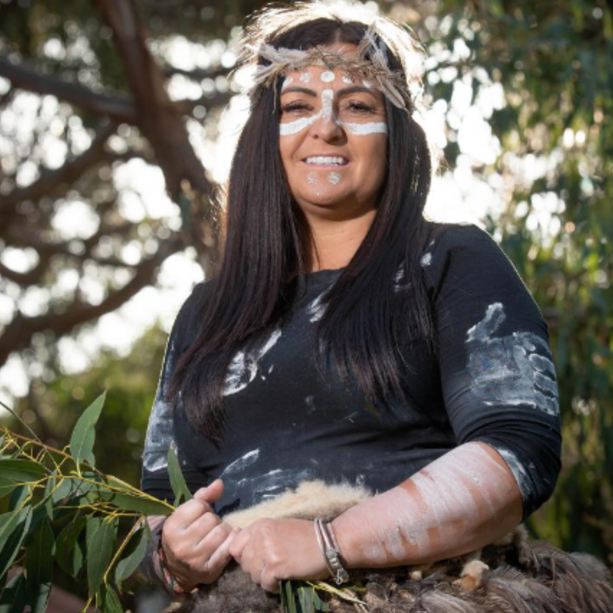 Eucalypt leaves, a welcome gift, smoked to cleanse, crushed, and boiled to heal. Wadawurrung people would wear Eucalypt on their bodies and men would place them on their spears as a sign of peace to come together with no harm, to gather in peace on Country. Eucalypt trees grow and prosper from the waters of Country, the nourishment that our Mother Country gives. Eucalypt are a connection to all Peoples living on or off Country.