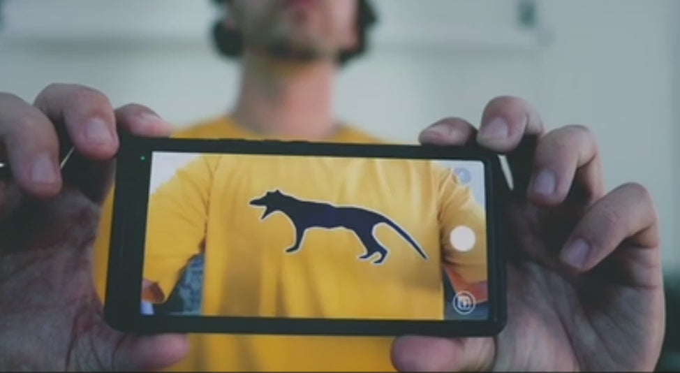 TASSIE TIGER (AR) TEE Use Augmented Reality to view this mysterious animal through a First Nations lens.
