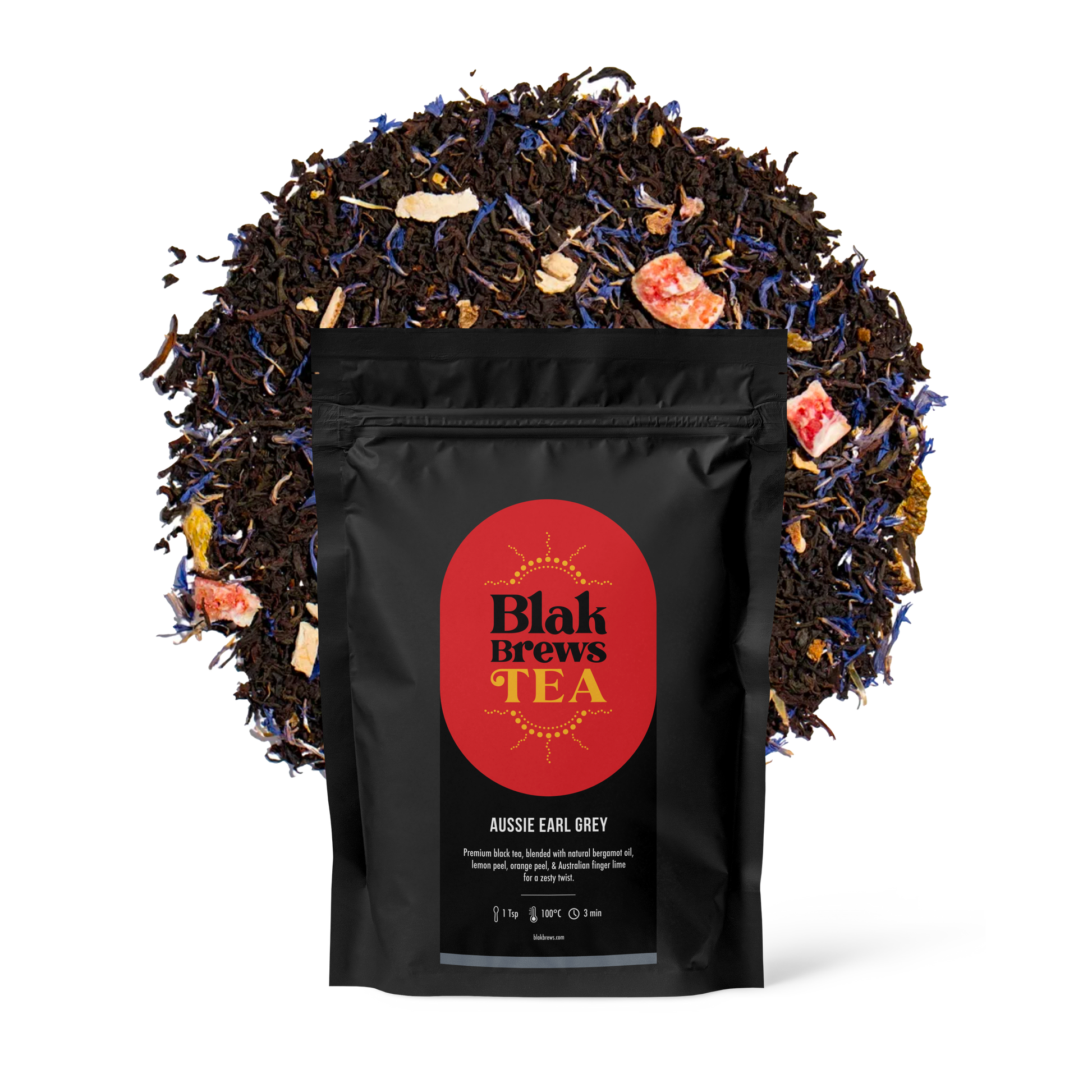 Aussie Earl Grey - A premium, mild black tea flavoured with organic vanilla beans, finger lime and bergamot to achieve a smooth and creamy taste with a zesty finish.