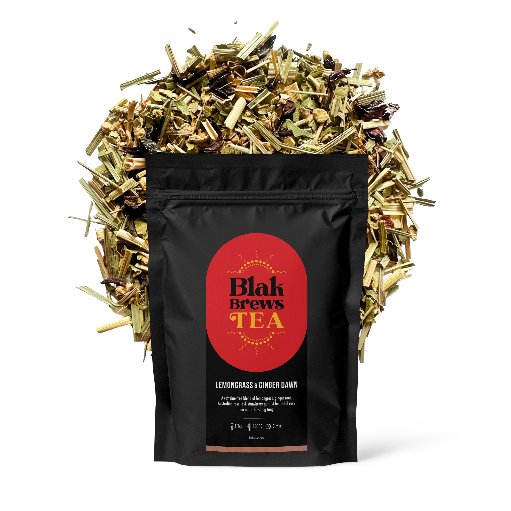 Lemongrass & Ginger Dawn - Lemongrass not only tantalizes your palate but also aids digestion and promotes a calm mind. Rosella is a powerhouse of antioxidants, working to boost your immune system. Ginger brings its anti-inflammatory properties to the mix, while Lemon Myrtle is rich in vitamins and may have antibacterial benefits. Strawberry Gum adds a sweet note while potentially supporting oral health. It’s not just tea; it’s a sip towards a healthier, happier you!
