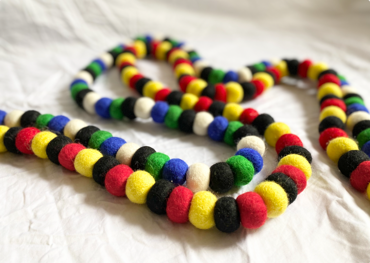 We currently sell two different garlands styles, our Spaced Pride Garlands (that have a gap between the felt balls of approximately 2/3cm) and our Chunky Pride Garlands (that have no gap between the balls and come made with either 1cm or 2 cm balls).