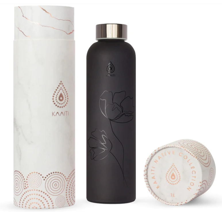 Support your sustainable lifestyle with this Australian designed native-inspired glass water bottle!