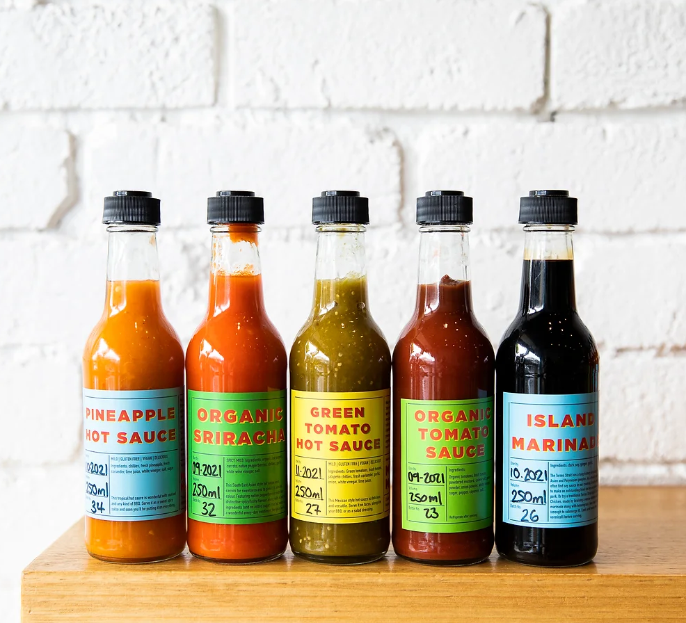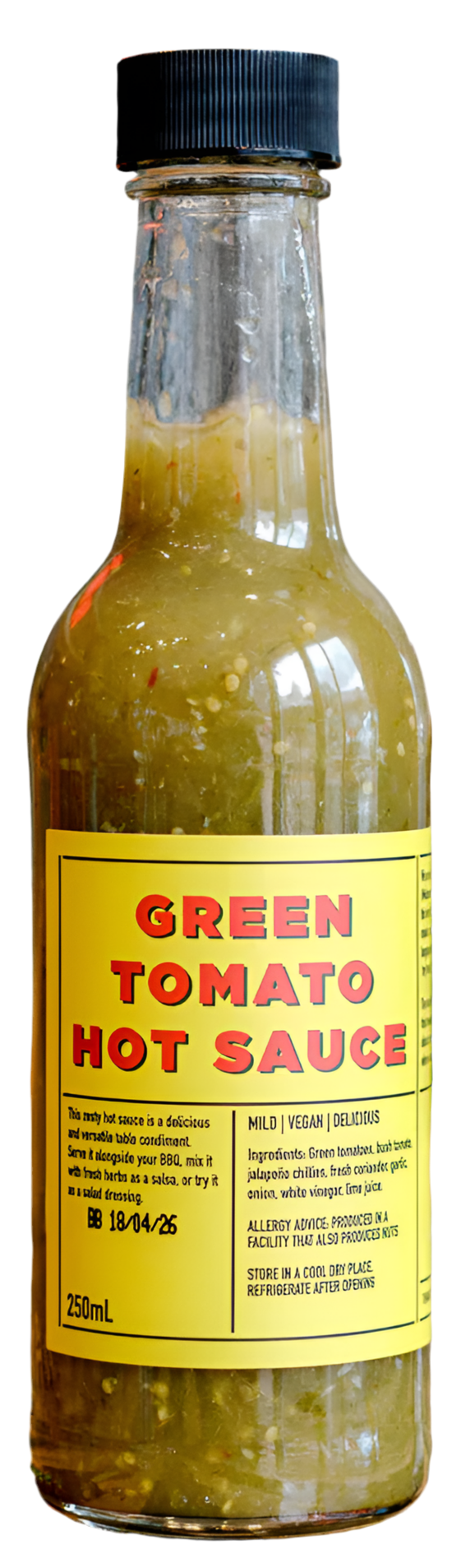 - Green Tomato Hot Sauce - a zesty Mexican style hot sauce that can be used with tacos or as a salad dressing (green tomatoes, bush tomato, jalapeño chillies, fresh coriander, garlic, onion, white vinegar, lime juice).