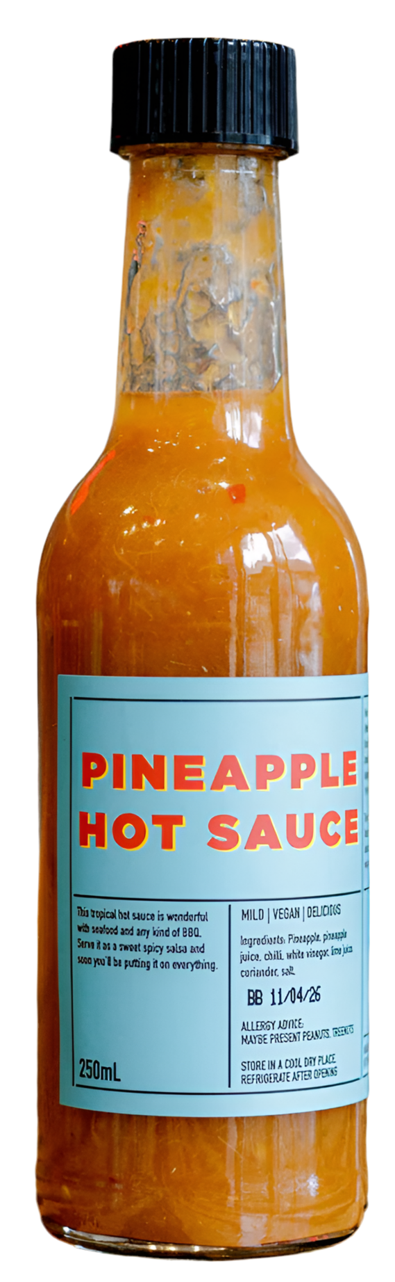 - Pineapple Hot Sauce - a tropical hot sauce for fish and white meats, or as a salad dressing (chillies, fresh pineapple, fresh coriander, lime juice, white vinegar, salt, sugar).