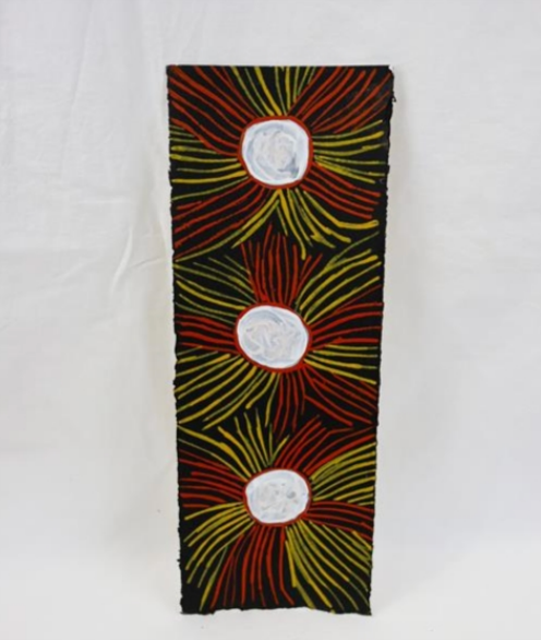 Kunggobarn is then striped into two, split into fine strands and dried. Once dried, the pandanus is then ready for dying. Natural dyes are also collected out on Country in various times of the year dependent on weather systems.